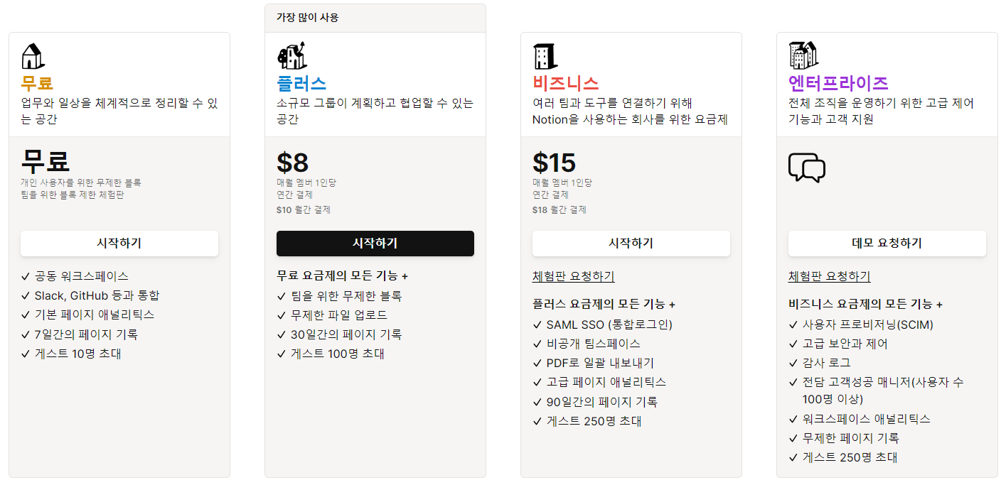 노션은 강력한 기능과 사용자 친화적인 인터페이스로 혁신적인 생산성 도구의 상징적인 존재로 자리매김하고 있습니다. 개인과 팀 단위에서 각자의 목적에 맞게 유연하게 활용할 수 있어, 다양한 분야에서 널리 활용되고 있습니다. 무료 버전으로 사용해 보시고 본인의 목적에 맞게 활용 할 수 있을지 확인해 보셔도 좋겠습니다.
