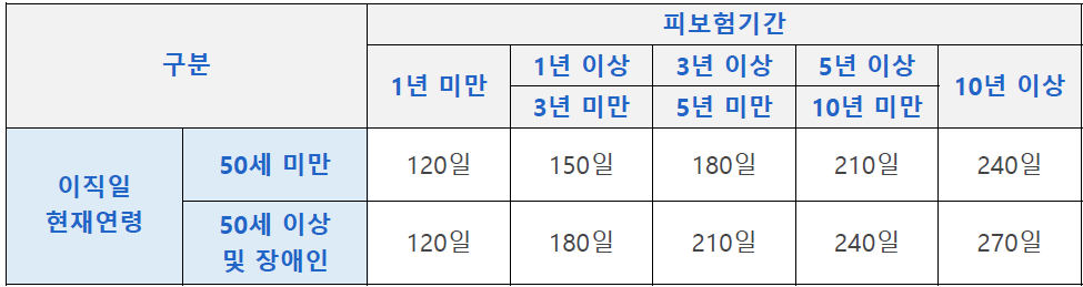 실업급여는 고용보험 가입기간에 따라 최소 120일에서 최대 270일 범위 내에서 지급됩니다. 이직일 현재 연령에 따라서도 다소 차이가 있습니다