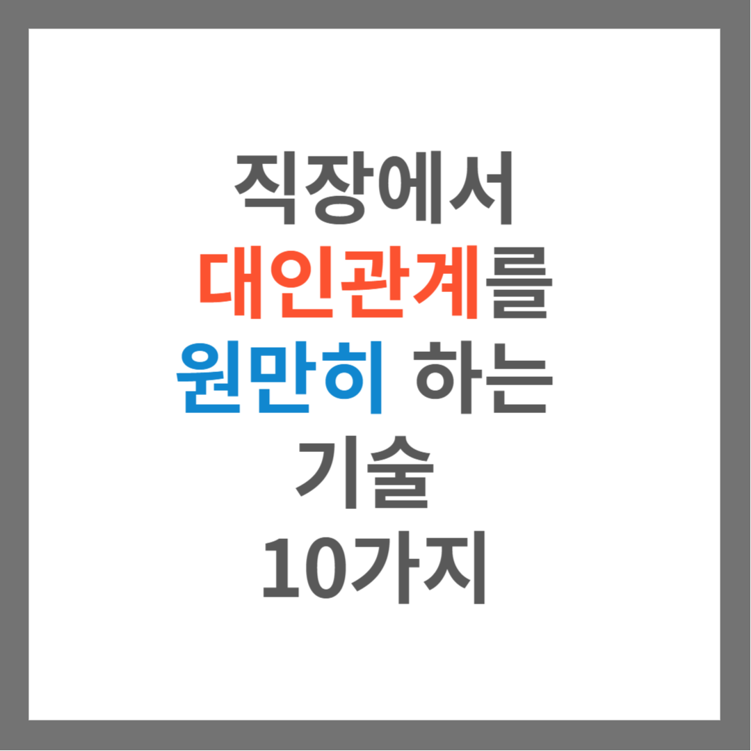 이렇게 다양한 기술을 익히고 실천함으로써, 당신은 직장에서 원활하고 긍정적인 대인관계를 구축할 수 있습니다. 서로를 이해하고 존중하는 마음을 가지며, 함께 성장하는 기회를 만들어나가길 바랍니다.